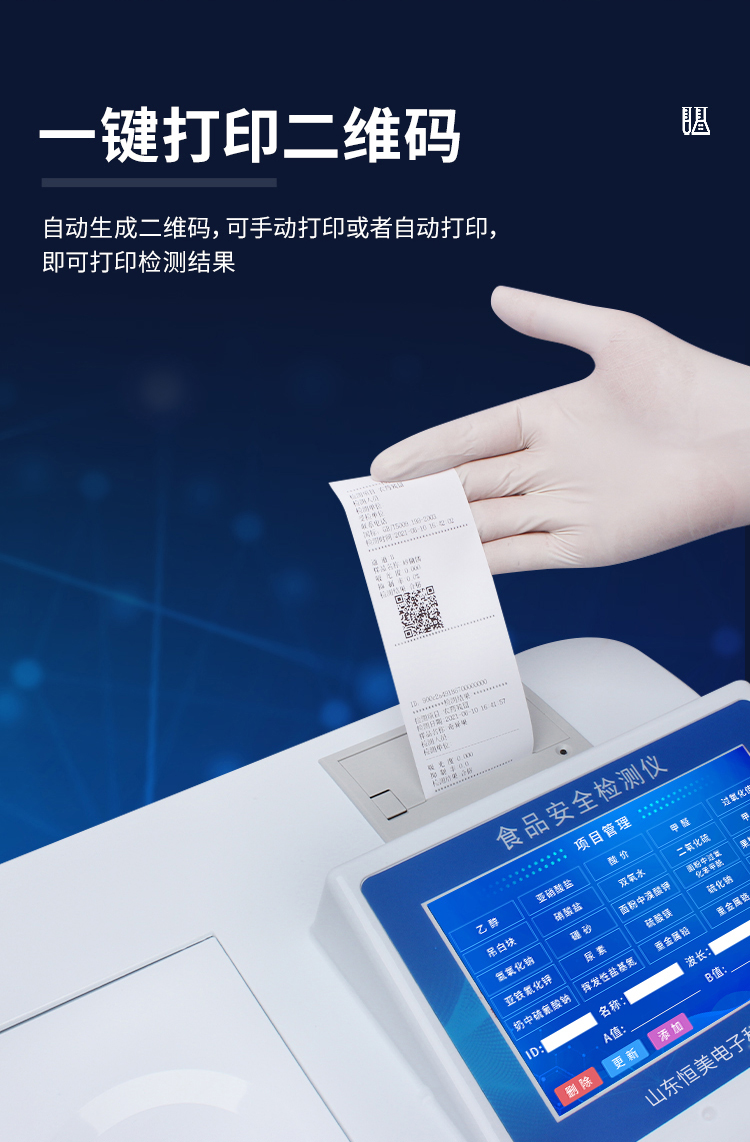 5、配備新一代嵌入式熱敏打印機(jī),可選擇手動(dòng)打印或者自動(dòng)打印,檢測(cè)完成可自動(dòng)打印檢測(cè)報(bào)告和二維碼。