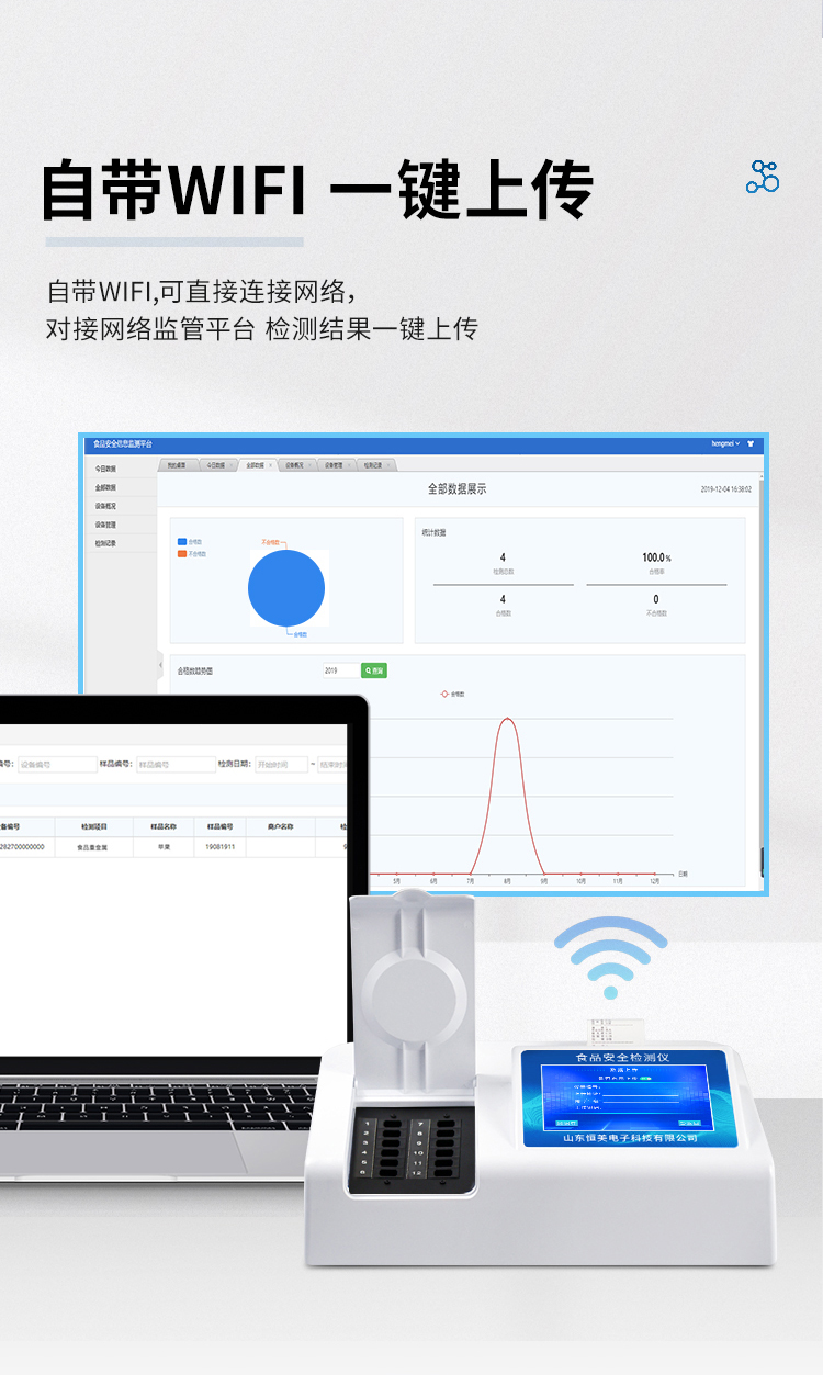 8、儀器帶有監(jiān)管平臺(tái)。數(shù)據(jù)可局域網(wǎng)和互聯(lián)網(wǎng)數(shù)據(jù)上傳,檢測(cè)結(jié)果直接傳至食品安全監(jiān)管平臺(tái)。進(jìn)行區(qū)域食品安全監(jiān)管及大數(shù)據(jù)分析處理,檢測(cè)區(qū)域食品安全長(zhǎng)短期動(dòng)態(tài),達(dá)到食品安全問(wèn)題預(yù)估、預(yù)警