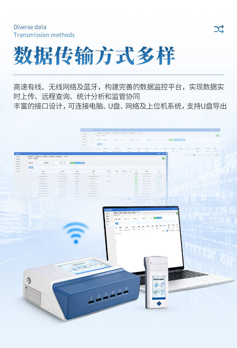 8、 無(wú)線網(wǎng)絡(luò)及藍(lán)牙,構(gòu)建完善的數(shù)據(jù)監(jiān)控平臺(tái),實(shí)現(xiàn)數(shù)據(jù)實(shí)時(shí)上傳、遠(yuǎn)程查詢、統(tǒng)計(jì)分析和監(jiān)管協(xié)同。