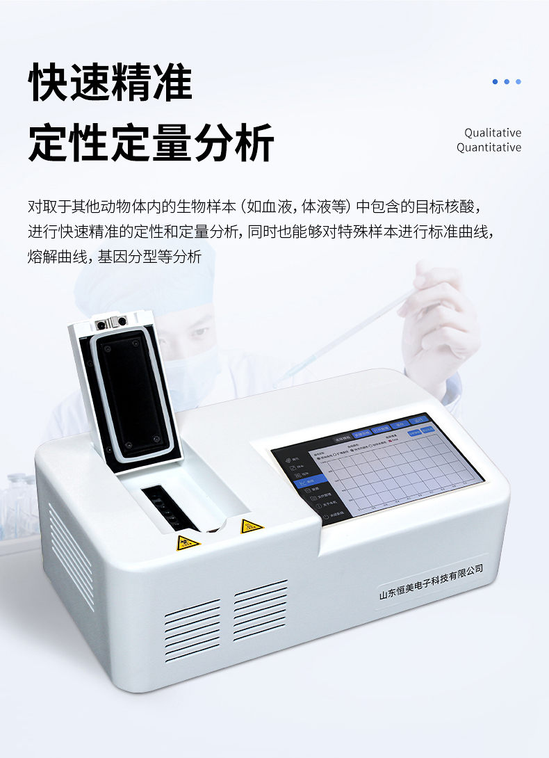 對取于其他動物體內(nèi)的生物樣本(如血液,體液等)中包含的目標(biāo)核酸,進(jìn)行快速精準(zhǔn)的定性和定量分析,同時也能夠?qū)μ厥鈽颖具M(jìn)行標(biāo)準(zhǔn)曲線,熔解曲線,基因分型等分析。