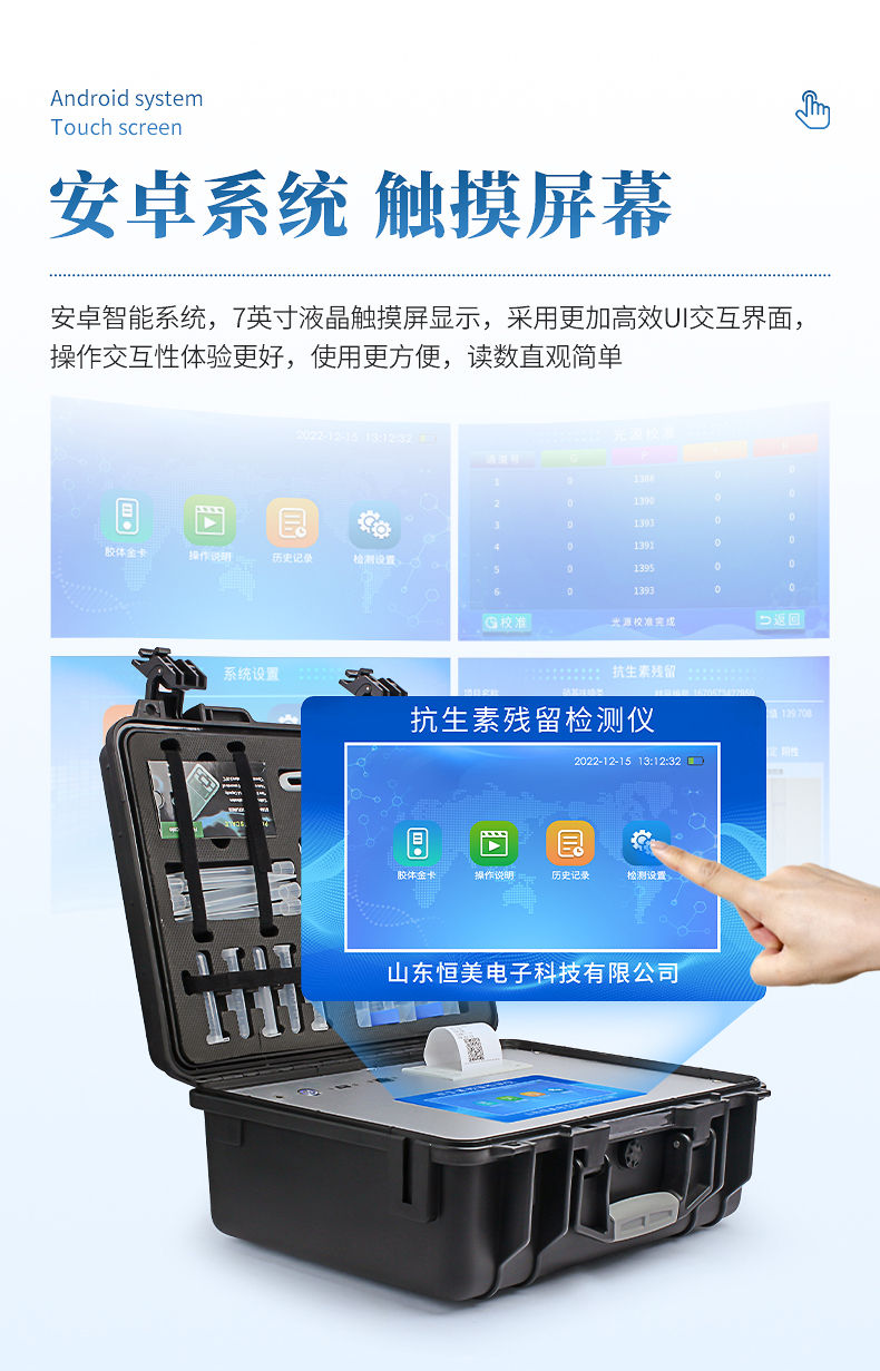 7、一體化便攜式快檢設(shè)備,滿足現(xiàn)場(chǎng)及流動(dòng)檢測(cè)使用需求,能夠在同一軟件下實(shí)現(xiàn)所有檢測(cè)項(xiàng)目的檢測(cè),并可通過同一窗口直觀顯示檢測(cè)結(jié)果。