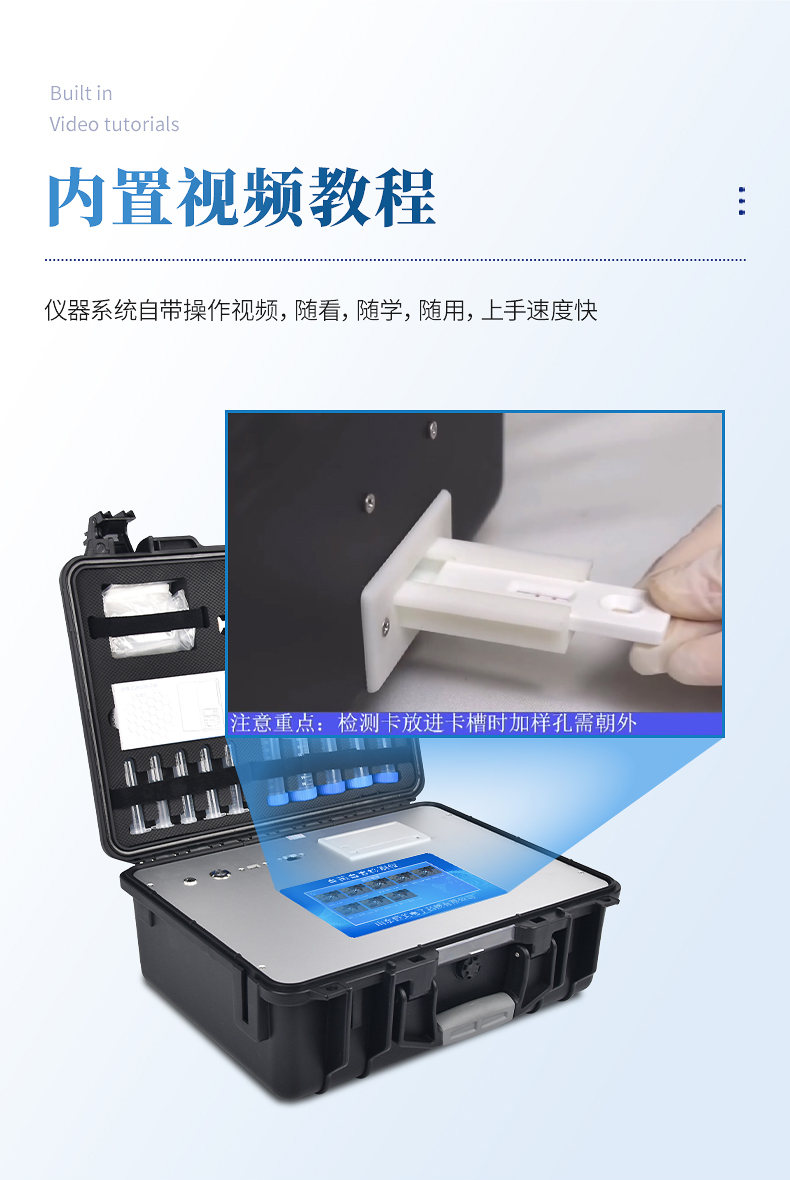 1、一體化便攜式快檢設(shè)備,機(jī)箱采用工業(yè)級ABS工程塑料箱,方便攜帶,穩(wěn)固耐用,滿足現(xiàn)場及流動檢測使用需求。