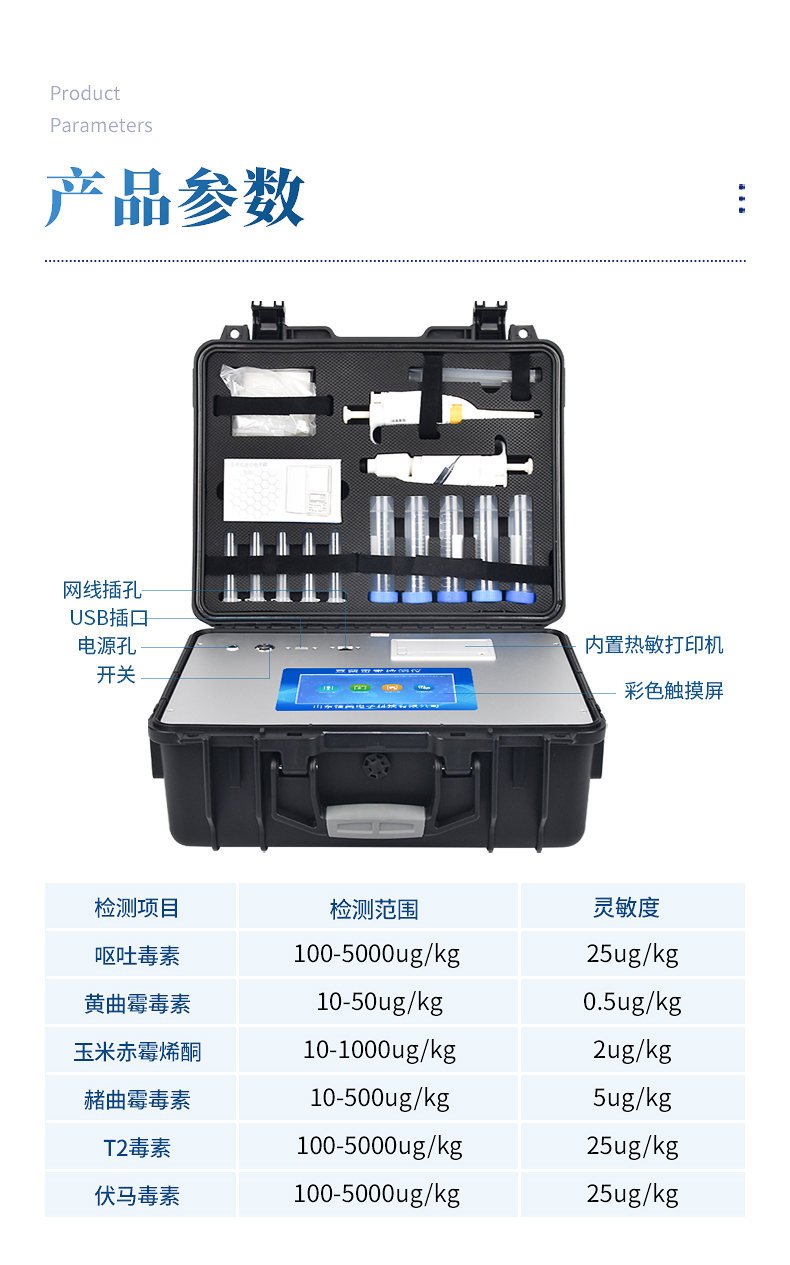 檢測范圍:100-5000ug/kg 靈敏度:25ug/kg