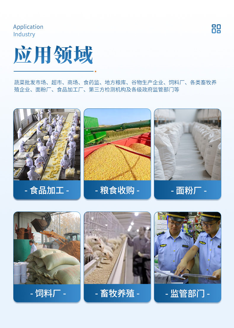 熒光定量檢測儀采用熒光定量快速檢測原理,主要檢測糧油谷物飼料中真重金屬鉛和鎘,檢測樣品涵蓋糧食谷物(大米、玉米、小麥、大麥、高粱等)及其制品、飼料及其原料、食用油脂、牛奶及其制品等;樣品前處理簡單,整個檢測過程檢測12 min,產(chǎn)品適用于地方糧庫、谷物生產(chǎn)企業(yè)、飼料廠、各類畜牧養(yǎng)殖企業(yè)、面粉廠、食品加工廠、第三方檢測機(jī)構(gòu)及各級政府監(jiān)管部門;