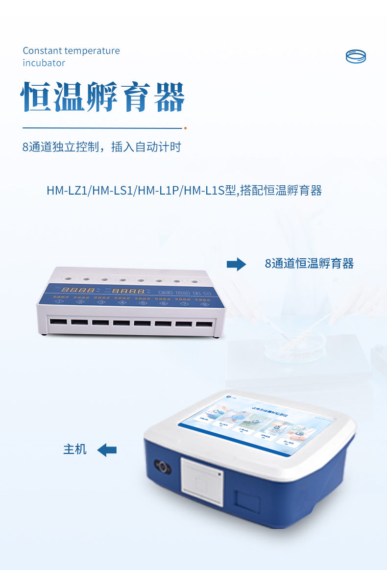 19、 恒溫孵育器:8通道獨(dú)立控制,插入自動計時,并可孵育1.5ml樣品管;