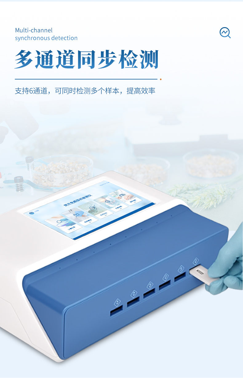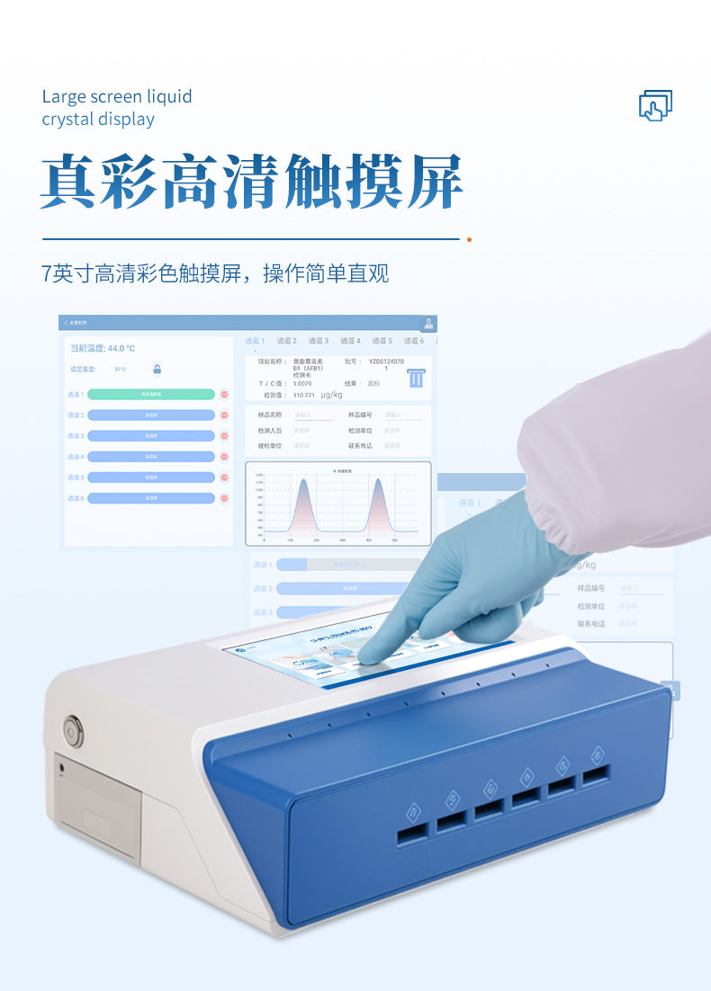 4、 內(nèi)置定量標(biāo)準(zhǔn)曲線:儀器內(nèi)置標(biāo)準(zhǔn)曲線,無需使用標(biāo)準(zhǔn)品,檢測時無需做標(biāo)準(zhǔn)曲線,既節(jié)省了成本,也避免了操作人員與嘔吐毒素的接觸,保護(hù)操作人員的安全;