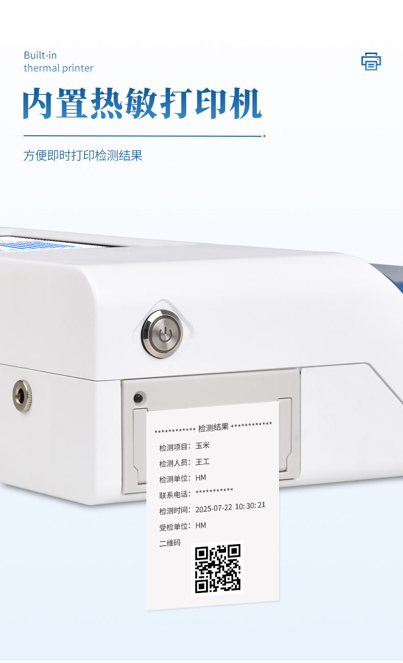 7、 內(nèi)置熱敏打印機(jī),可及時打印檢測信息,檢測數(shù)據(jù)可上傳監(jiān)管平臺功能。