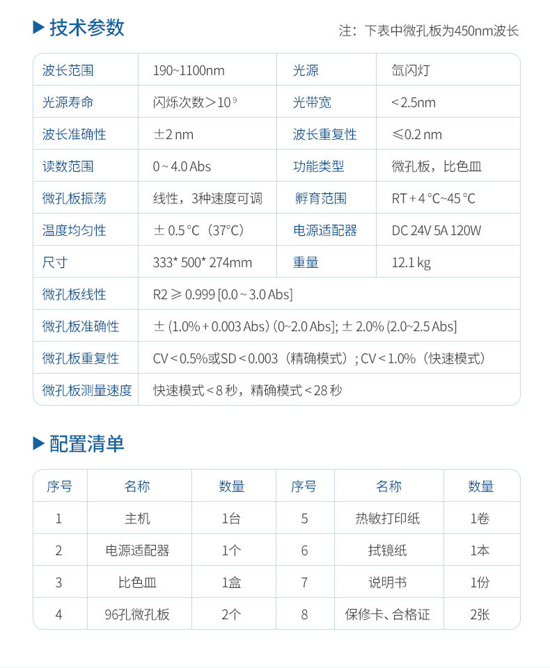 12. 微孔板重復(fù)性(450 nm):CV < 0.5%或SD < 0.003(**模式);CV < 1.0%(快速模式)