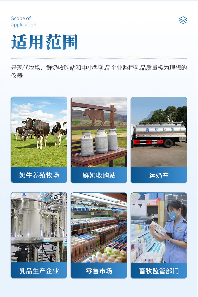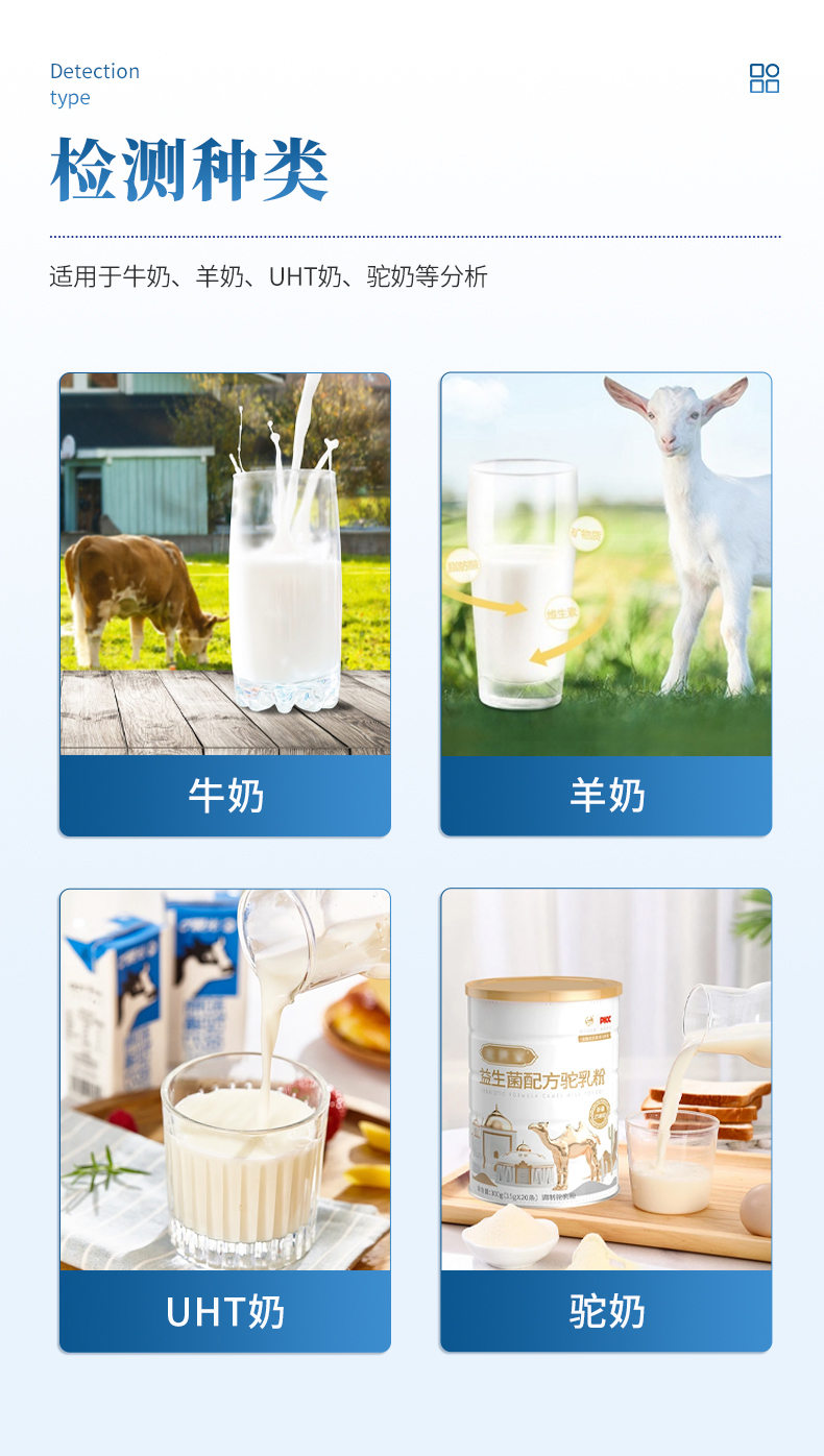 牛奶分析檢測儀主要用于乳制品中脂肪,蛋白質(zhì)、乳糖、非脂固形物、密度、摻水率、冰點(diǎn)、灰份、溫度、PH值、電導(dǎo)率的測定,適用于牛奶、羊奶、UHT奶等分析,是現(xiàn)代牧場、鮮奶收購站和中小型乳品企業(yè)監(jiān)控乳品質(zhì)量極為理想的儀器。