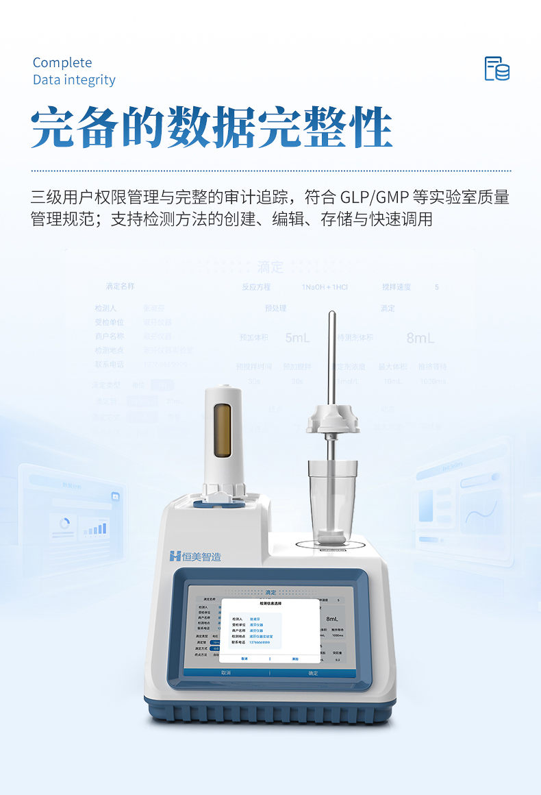 2.高精度滴定系統(tǒng),檢測結(jié)果達到或優(yōu)于國標要求。支持滴定管快速更換,維護便捷;