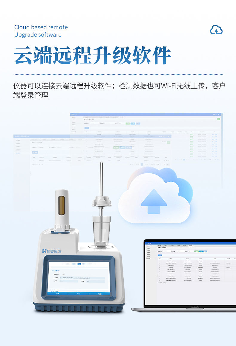 8.儀器可以連接云端遠程升級軟件;檢測數(shù)據(jù)也可Wi-Fi無線上傳,客戶端登錄管理。