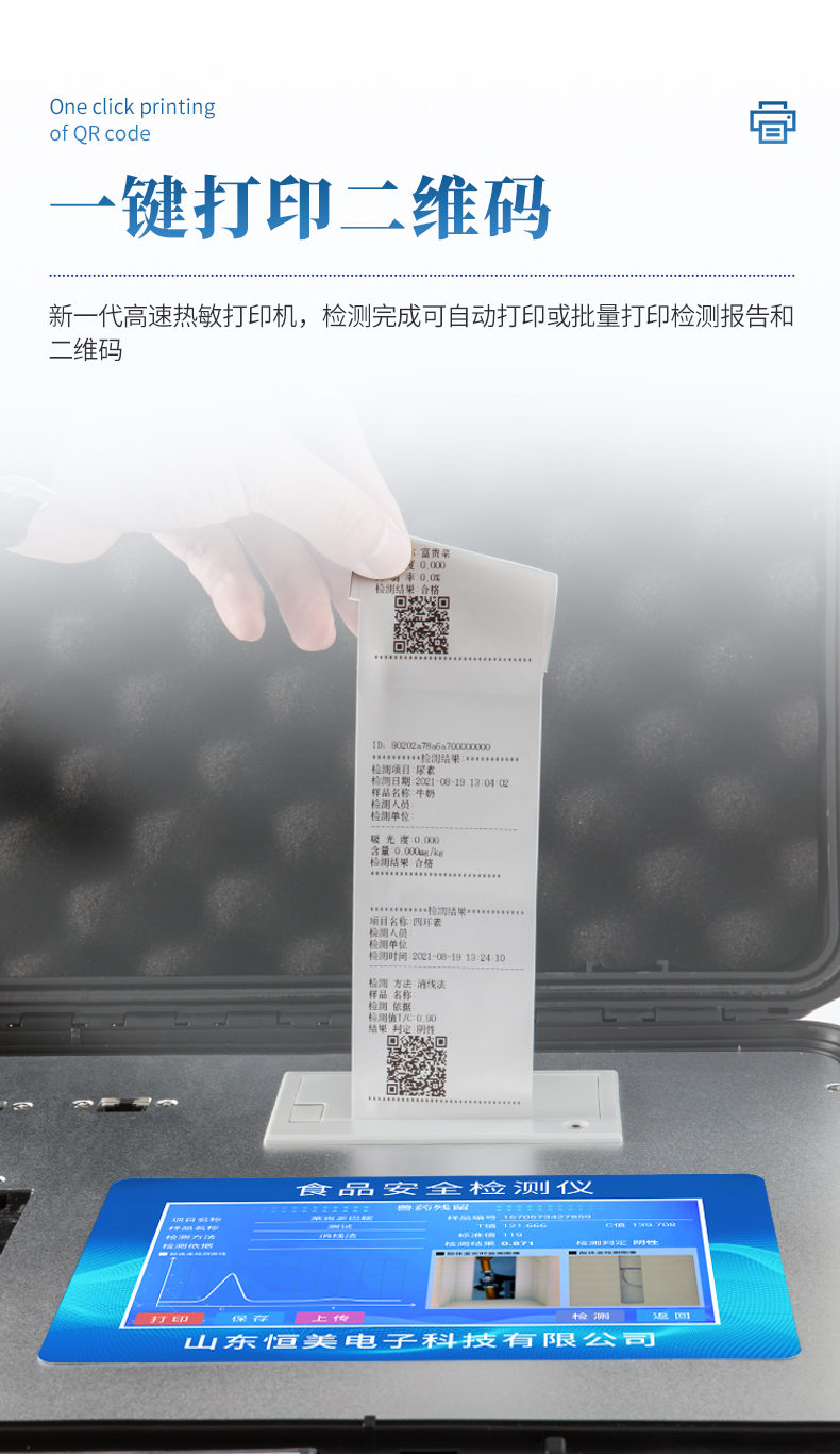 3、新一代高速熱敏打印機,檢測完成可自動打印或批量打印檢測報告和二維碼。