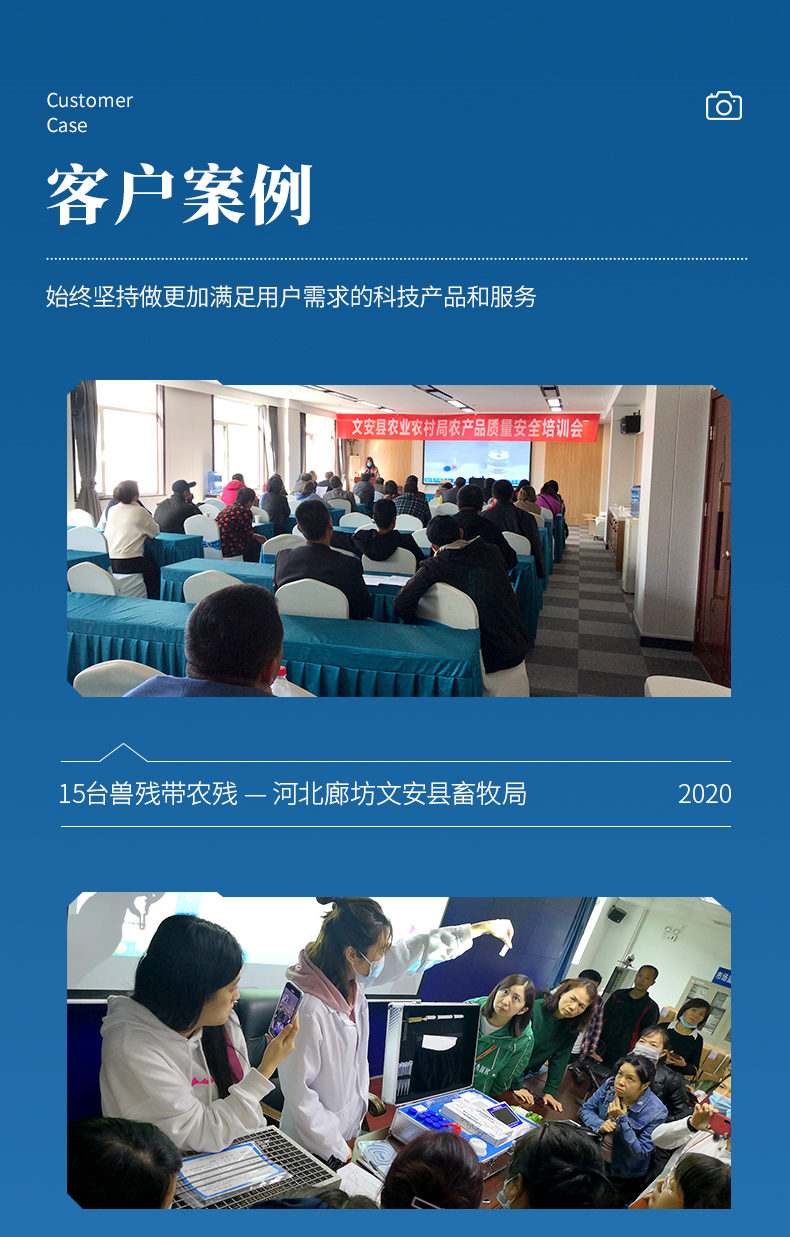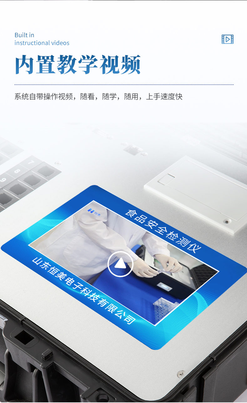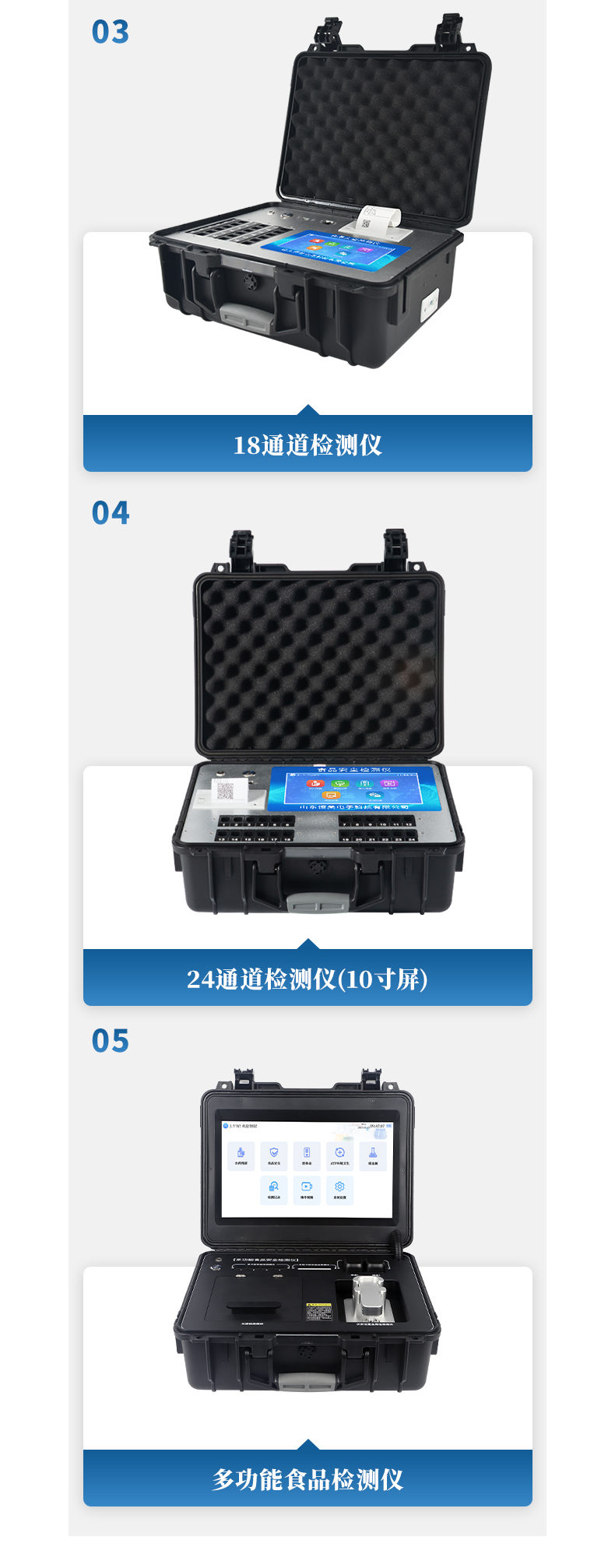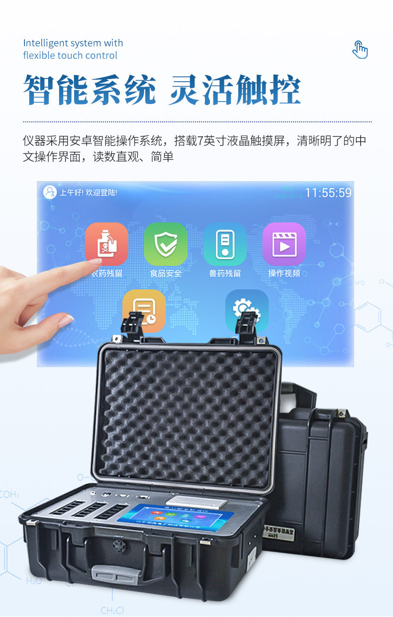 食品安全檢測設(shè)備可快速檢測200多項目,包含非食用化學(xué)物質(zhì)、濫用食品添加劑、農(nóng)藥殘留、獸藥殘留、重金屬、病害肉、營養(yǎng)強化劑、抗生素類殘留、激素類殘留、真菌毒素類殘留、化學(xué)類殘留等現(xiàn)場的定性定量檢測。