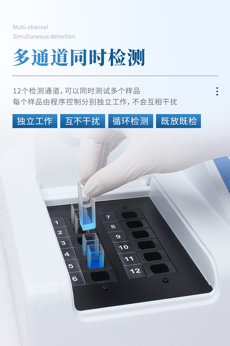3、檢測通道:≥12個檢測通道,可以同時測試多個樣品,每個樣品由程序控制分別獨立工作,不會互相干擾。