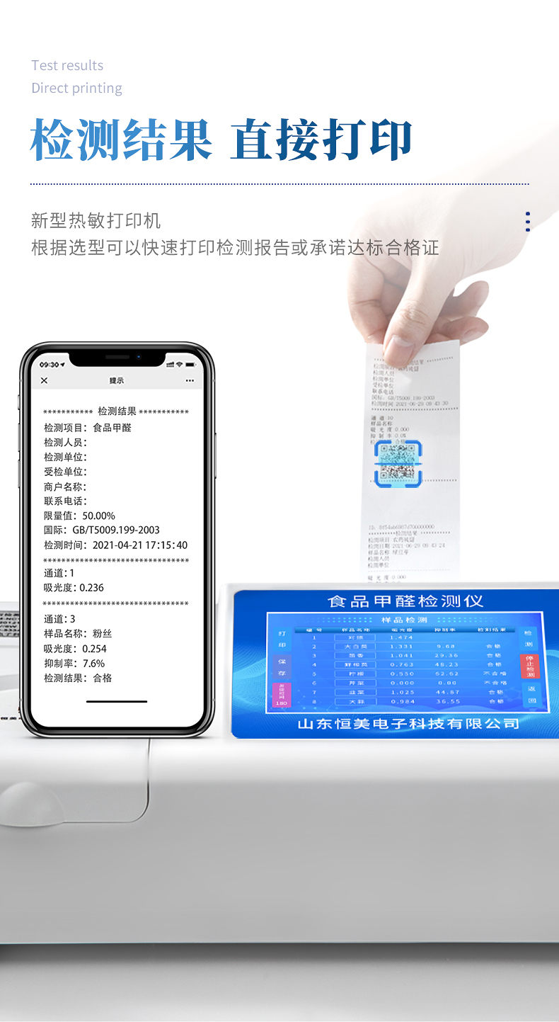 4、配備新一代嵌入式熱敏打印機,檢測完成可自動打印檢測報告和二維碼。