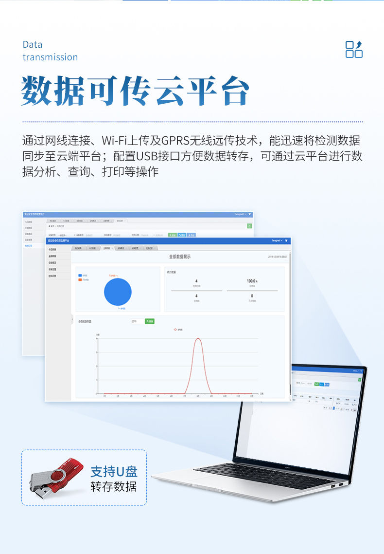 ●配置USB接口,支持U盤轉(zhuǎn)存,方便數(shù)據(jù)轉(zhuǎn)存至云平臺,通過平臺實現(xiàn)數(shù)據(jù)查詢、瀏覽、分析、統(tǒng)計、打印等。