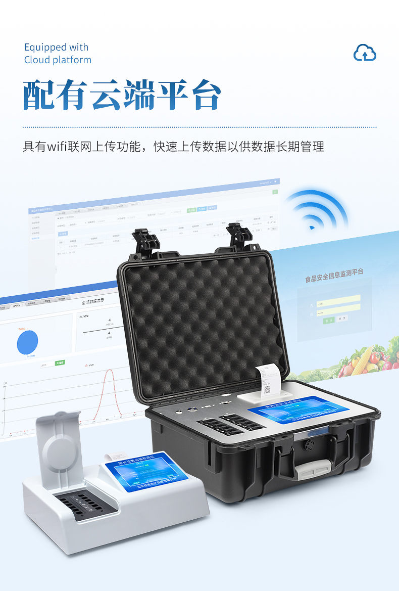 ★4、儀器帶有監(jiān)管平臺,數(shù)據(jù)可局域網(wǎng)和互聯(lián)網(wǎng)數(shù)據(jù)上傳,檢測結(jié)果直接傳至食品安全監(jiān)管平臺。進(jìn)行區(qū)域食品安全監(jiān)管及大數(shù)據(jù)分析處理與數(shù)據(jù)統(tǒng)計(jì),檢測區(qū)域食品安全長短期動(dòng)態(tài),達(dá)到食品安全問題預(yù)估、預(yù)警